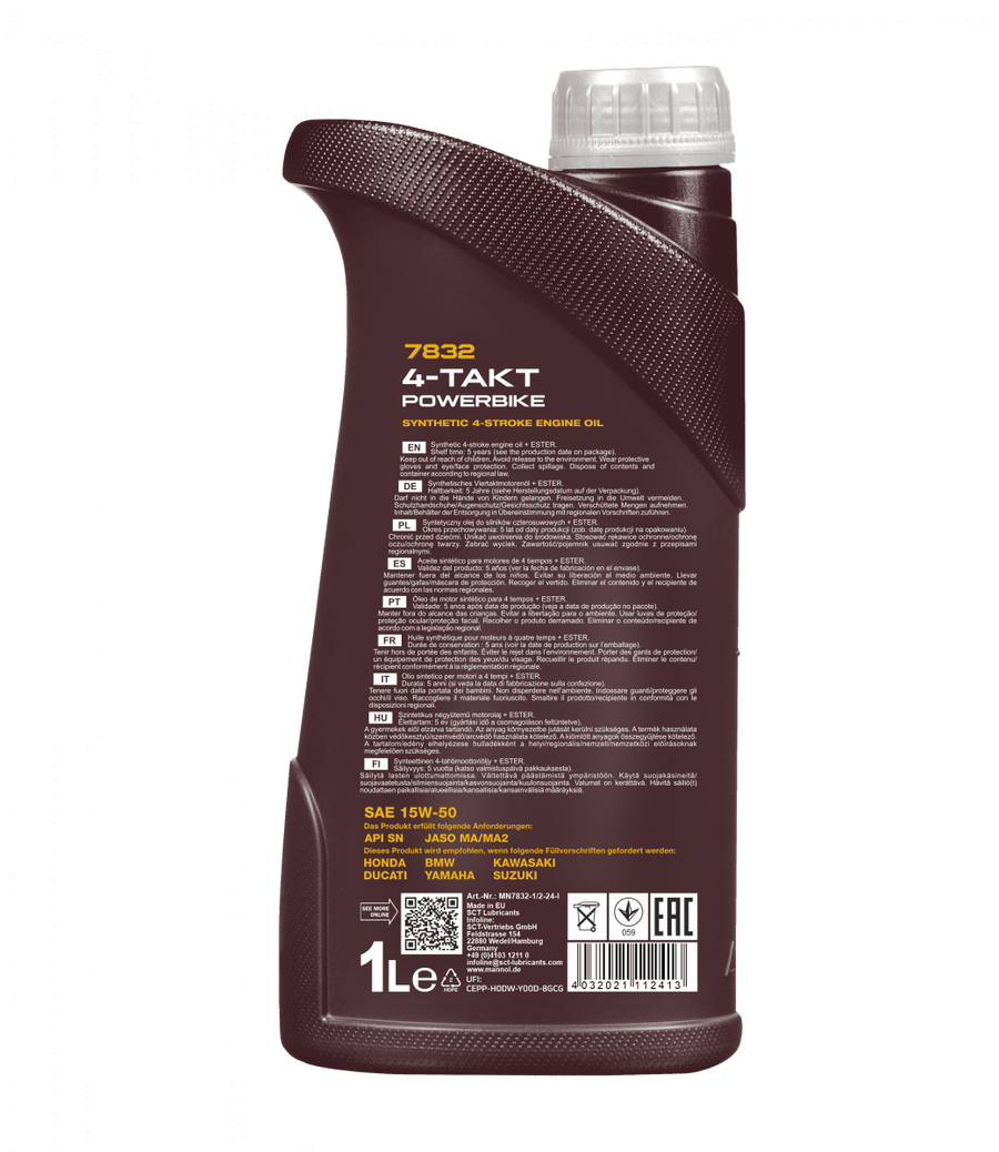 زيت محرك تخليقي بالكامل لمحركات الدراجات النارية رباعية الأشواط التي تعمل بالبنزين ، والدراجات البخارية ذات التبريد بالهواء والسوائل مع أو بدون علبة تروس مدمجة ، والقابض “الجاف” .