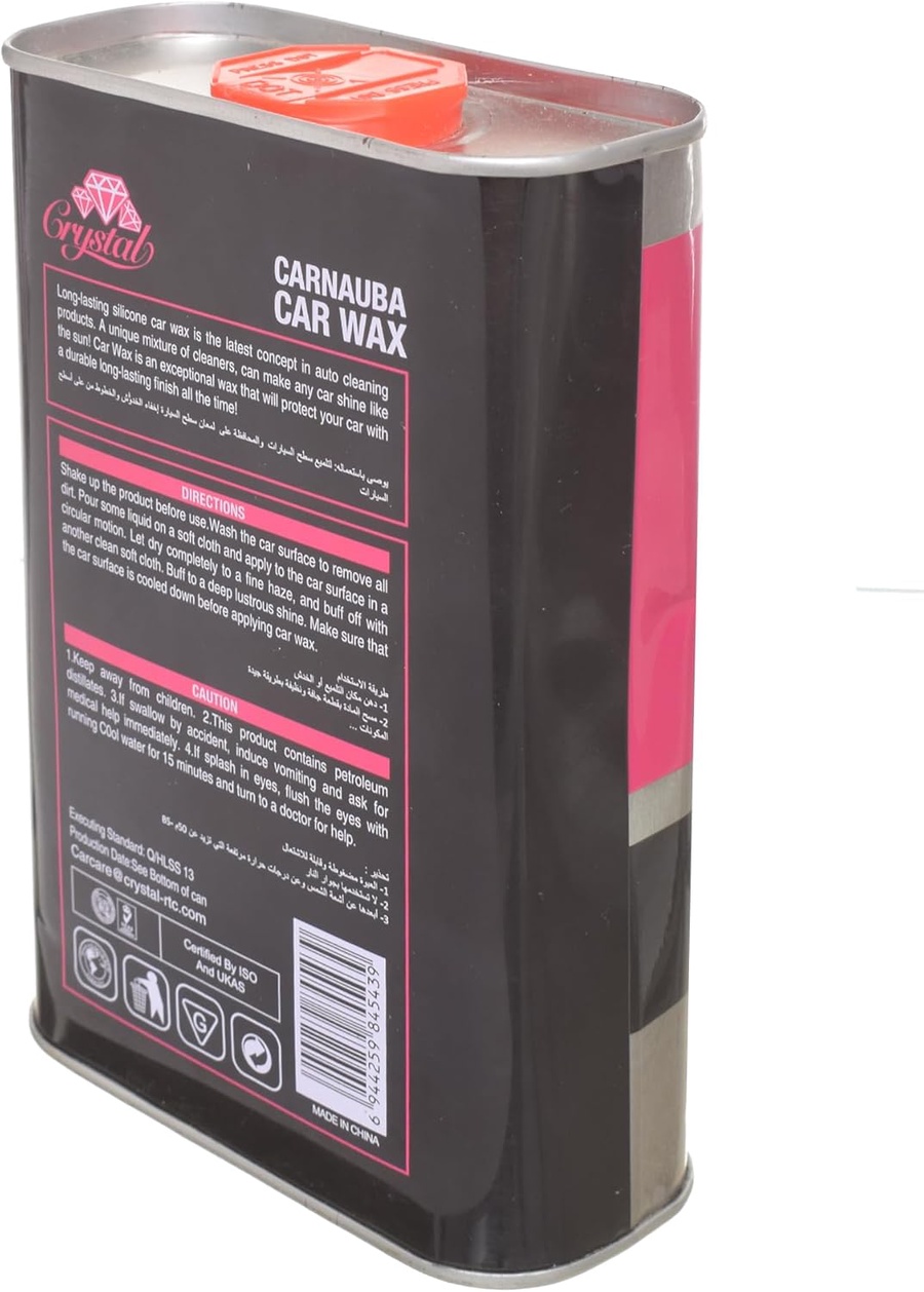 Give your car paint the longest-lasting shine & protection! Advanced micro-polishing technology removes minor scratches and haze, revealing the true, rich color of auto paint. Its liquid formula is for quick application, and safe for all paint finishes. Goes on fast; wipes off easily. USAGE DIRECTION: 1. Please make sure your car is clean and dry before applying to achieve the best results. 2. Use a foam applicator pad or microfiber cloth to apply a thin, even layer of Carnauba Wax onto a small section of the vehicle at a time. 3. Allow the wax to dry on the surface according to the product instructions. 4. Once the wax has dried to a haze, use a clean, dry microfiber cloth to buff the surface in a circular motion until the desired shine is achieved. 5. Repeat the process on the remaining sections of the vehicle. 6. Following these steps, you can protect your car's paint and achieve a stunning, glossy finish with our Carnauba Wax.