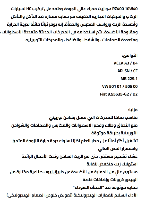 • يقلل الاحتكاك والتآكل في المحرك ويحسن لزوجة الزيت.