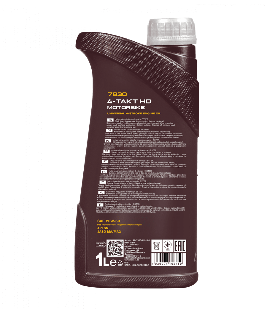 زيت محرك تخليقي مصمم خصيصًا لمحركات الدراجات النارية ذات الأربع أشواط ، بما في ذلك المحركات ذات الأسطوانتين على شكل ( V ).