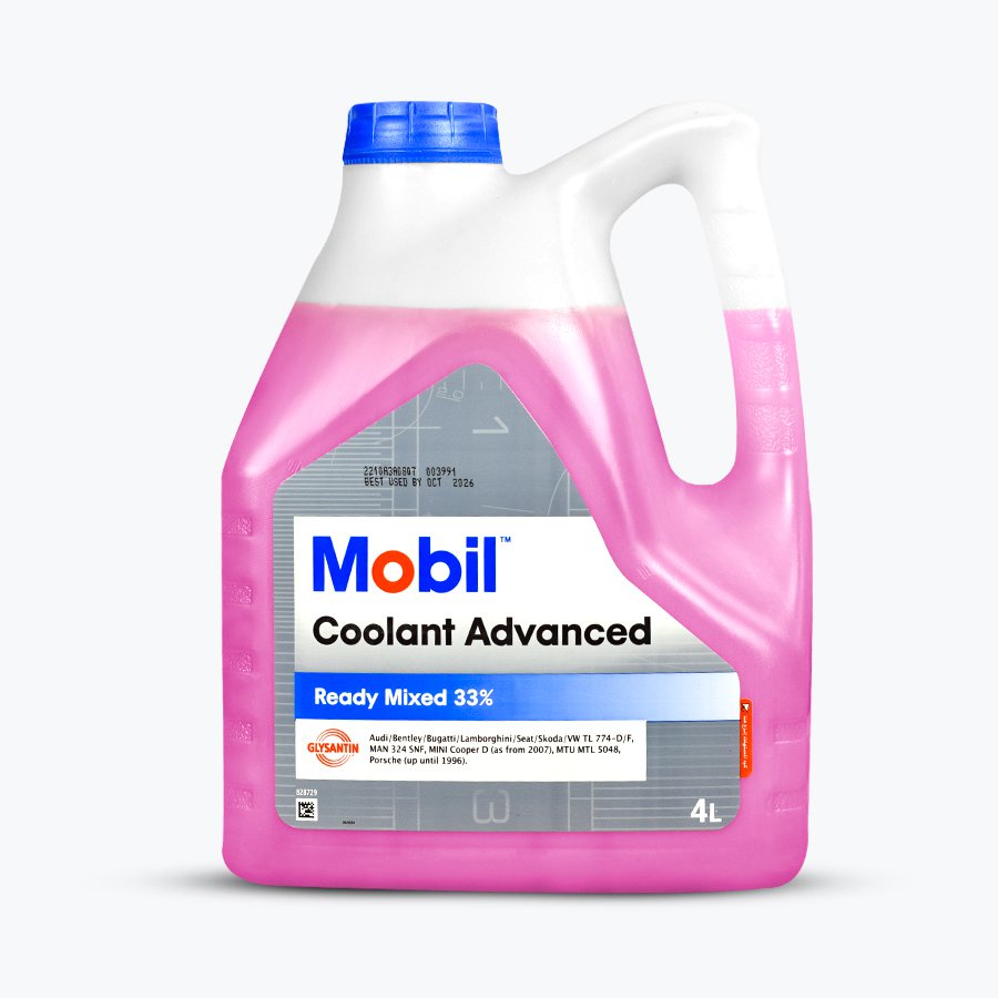 Mobil™ Coolant Advanced Ready Mixed 33% is a high-performance coolant designed to provide efficient protection down to -24°C during winter conditions. It is a ready-to-use product that has been premixed with 33% Mobil antifreeze and 67% water.